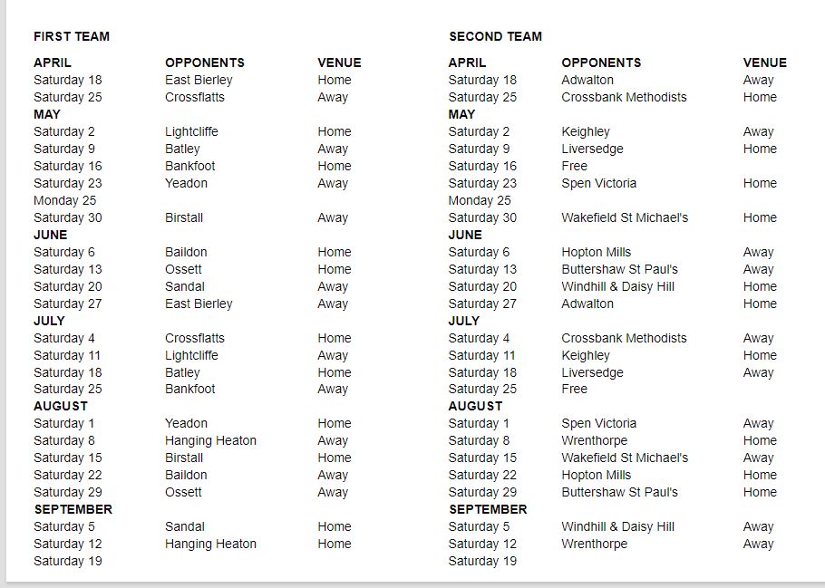 The 2026 league fixtures are out for the first and second teams. Click on Read More to see the games.