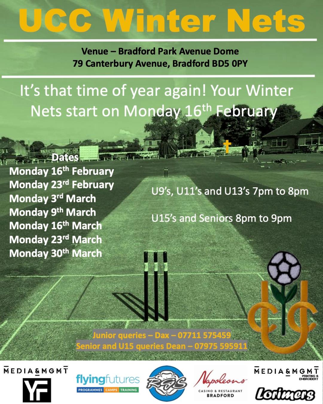 Details of senior and junior indoor nets at Bradford Park Avenue are now on line.