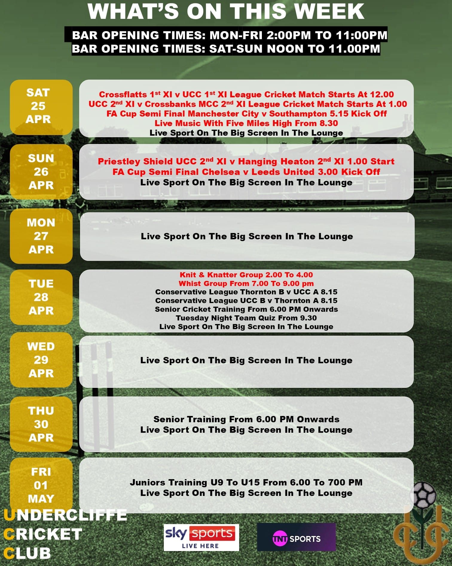 The 2nd XI are at home against Hanging Heaton CC 2nd XI in the 1st round of the Priestley Shield. Match starts at 1.00 pm. Tea rooms and bar open.